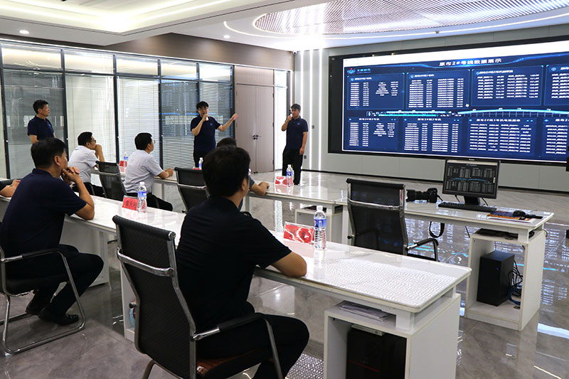 在公司数据化控制室,董事长助理王丰向来访人员做了《王牌发展,从产品打造到市场开拓的战略布局》的报告,介绍了近年来,王牌公司二次创业期间,在营销管理、厂房改造、设备升级改造、产品研发、环保升级改造和两次数据化升级改造持续投资及关键部门投资管理提升情况。