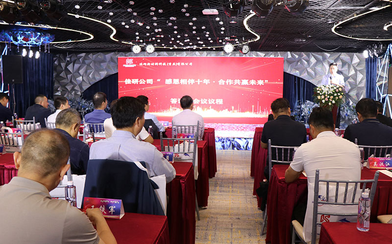 为感谢合作伙伴在过去十年的支持相伴,9月20日晚,借郑州三磨展召开的契机,重庆佳研新材料科技(重庆)有限公司邀请参加三磨展和观摩三磨展的佳研客户,供应商和各界朋友,在郑州市久久缘盛宴酒店举办了以“感恩十年相伴,合作共赢未来”为主题的答谢会。