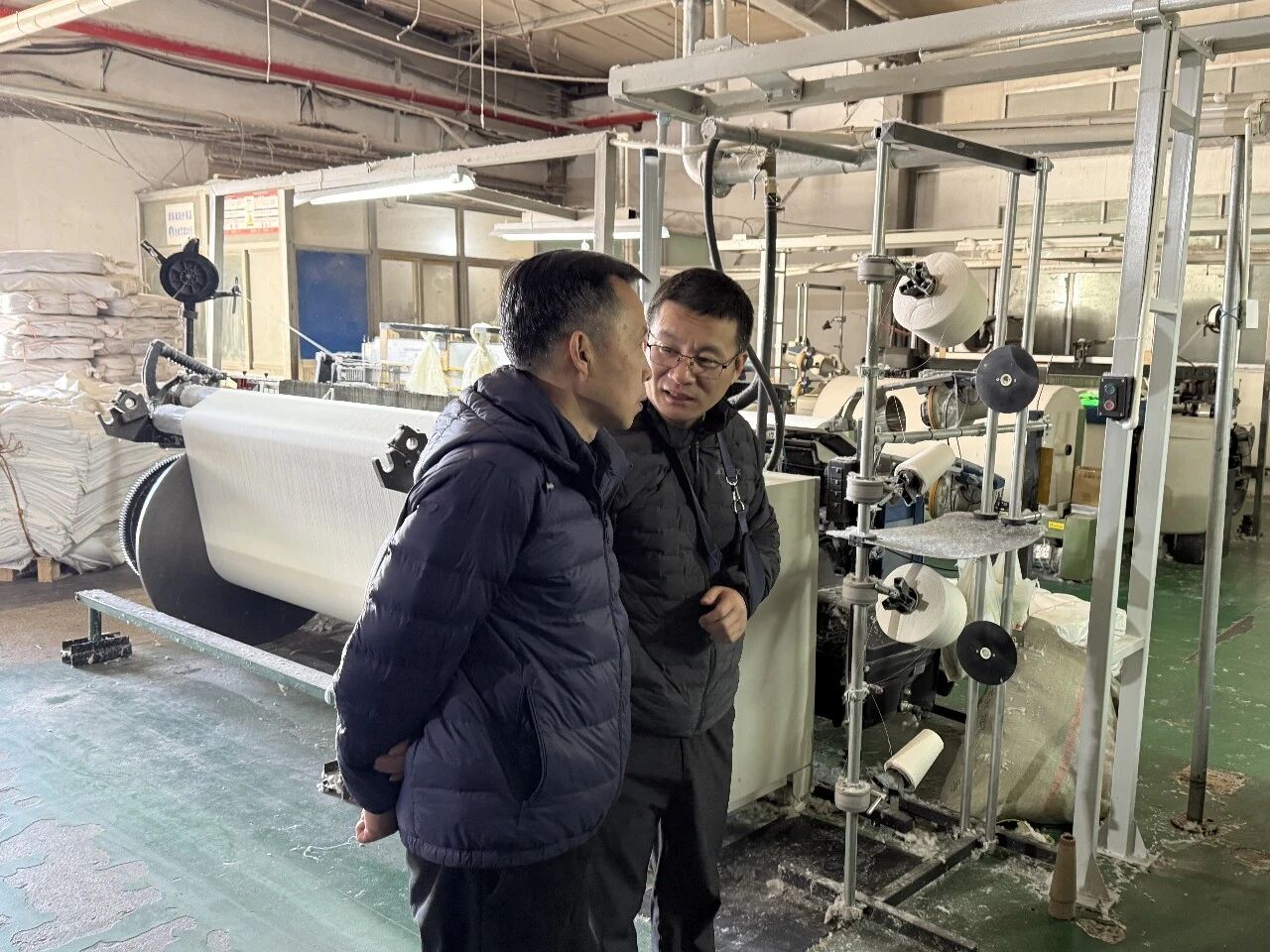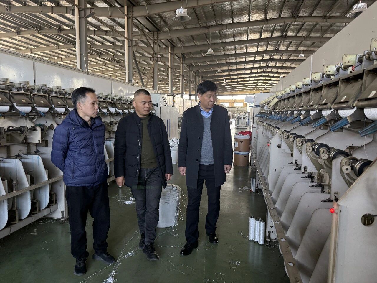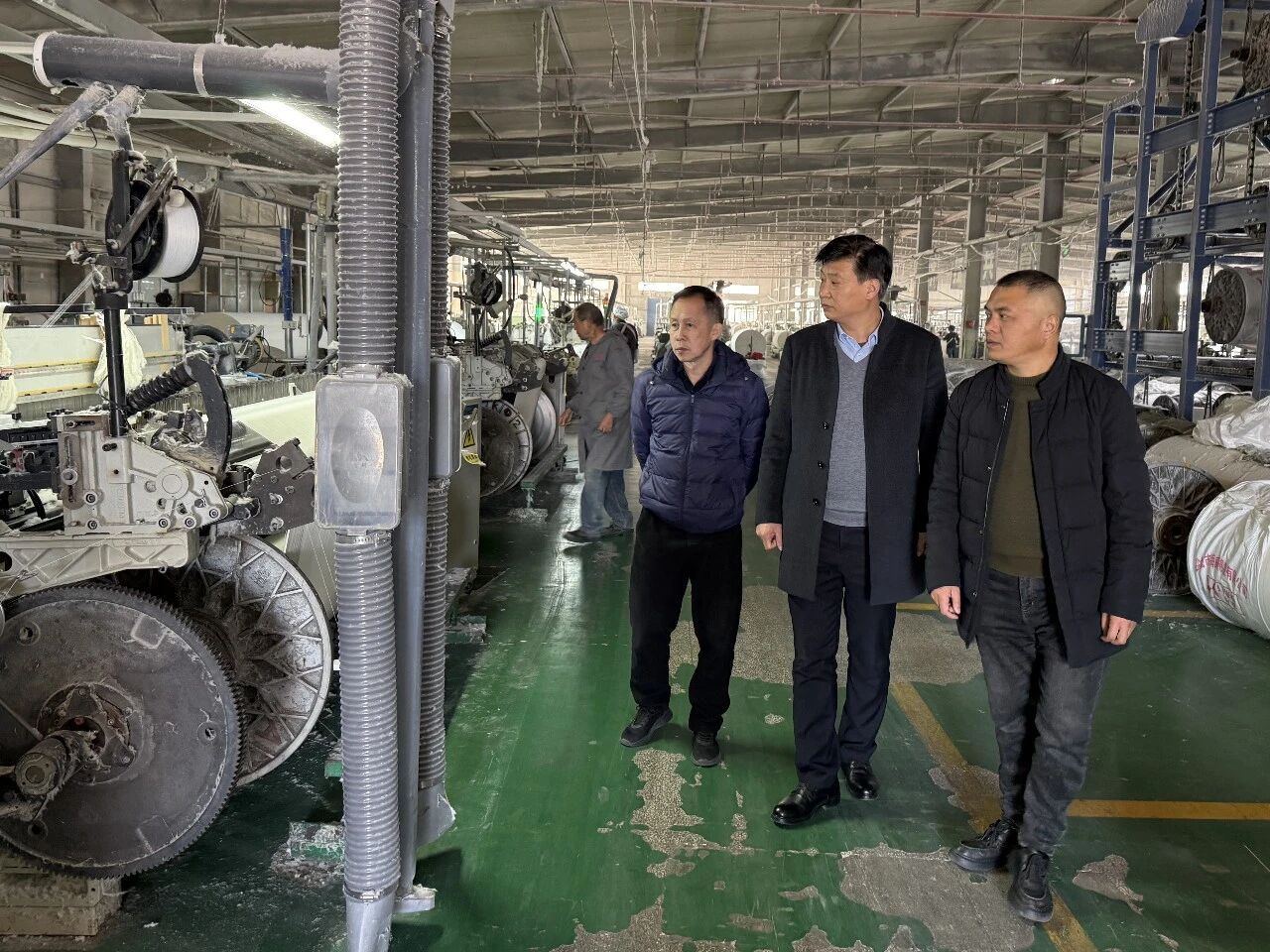12月5日上午,调研团队一行抵达盐城市开元纺织科技发展有限公司,董事长郭玉顺、总经理郭华、厂长卞长华热情接待。在总经理郭华与厂长卞长华的陪同下,调研团队深入企业生产车间,实地察看生产流程、设备运行及产品研发等情况,直观感受企业的生产运营实况。