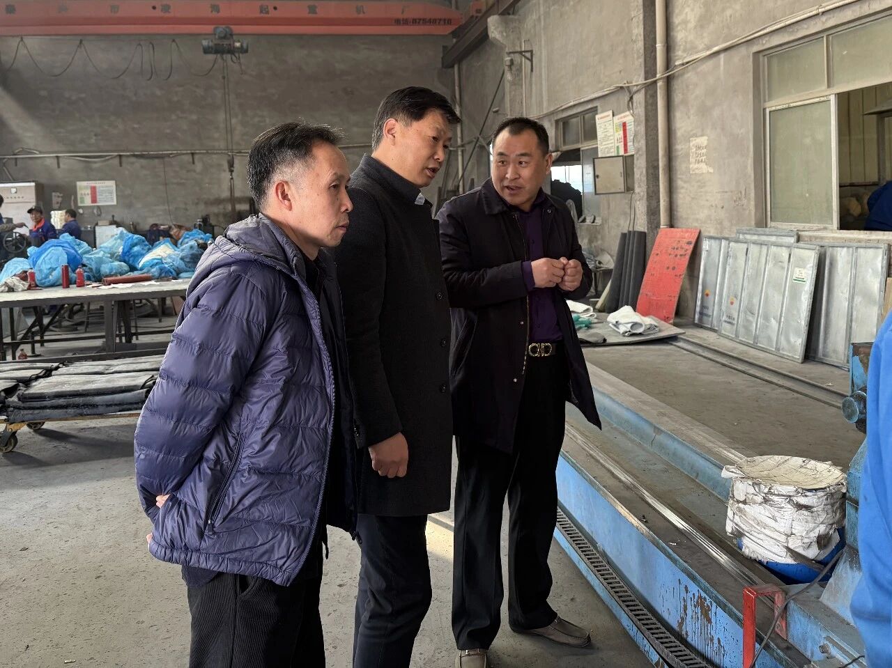 12月5日下午,秘书长一行赶赴泰兴市宏鑫橡胶有限公司,董事长顾荣杰热情接待并亲自带队,邀请调研团队深入胶辊生产车间实地察看。车间内,定制化加工设备高效运转,秘书长一行详细了解了工业胶辊的研发、生产及定制化服务全流程,直观感受企业在细分领域的技术积淀与生产实力。